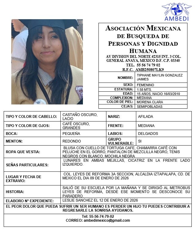 A ti, que transitas por Iztapalapa, que usas el Metrobús, que caminas por Río Frío: por favor, mira su rostro. No permitas que Tiphane se vuelva un número más en un expediente. Ella es una hija, una hermana, una estudiante con sueños que fueron interrumpidos en el trayecto a su hogar.